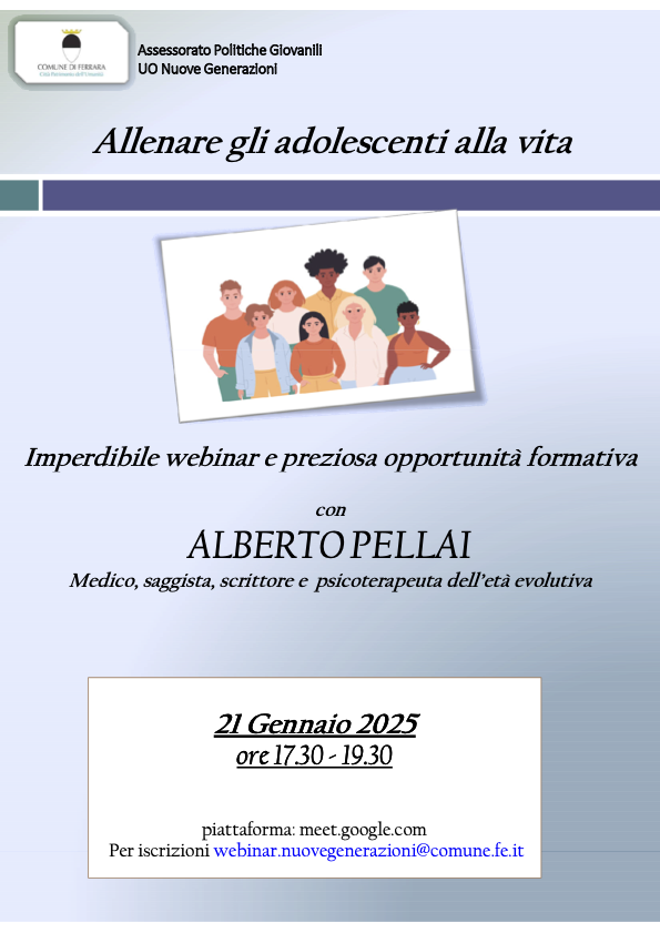 E ‘necessaria l’iscrizione inviando una mail di adesione a: webinar.nuovegenerazioni@comune.fe.it